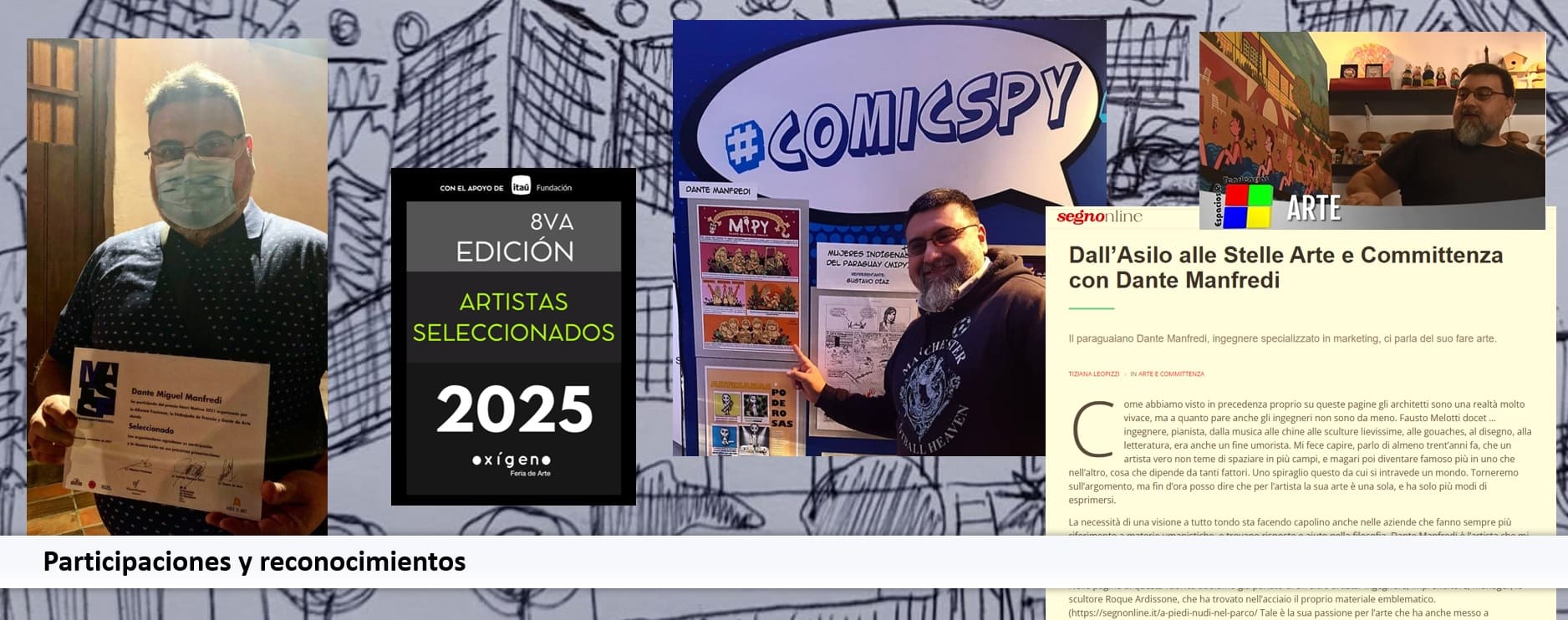 2019| 30 de mayo al 09 de junio: Participación en la Feria Internacional del libro de Asunción, con trabajos de Comics suyos y de otros artistas en el Stand de la Embajada de Estados Unidos / Biblioteca Rooselvet – CCPA en el marco del programa #ComicsPY 2.0, realizado en el Centro de Convenciones del Shopping Mariscal López, en la ciudad de Asunción – Paraguay.